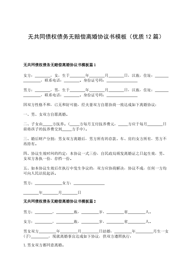 (夫妻婚姻关系存续期间,男女双方无共同债权债务。)