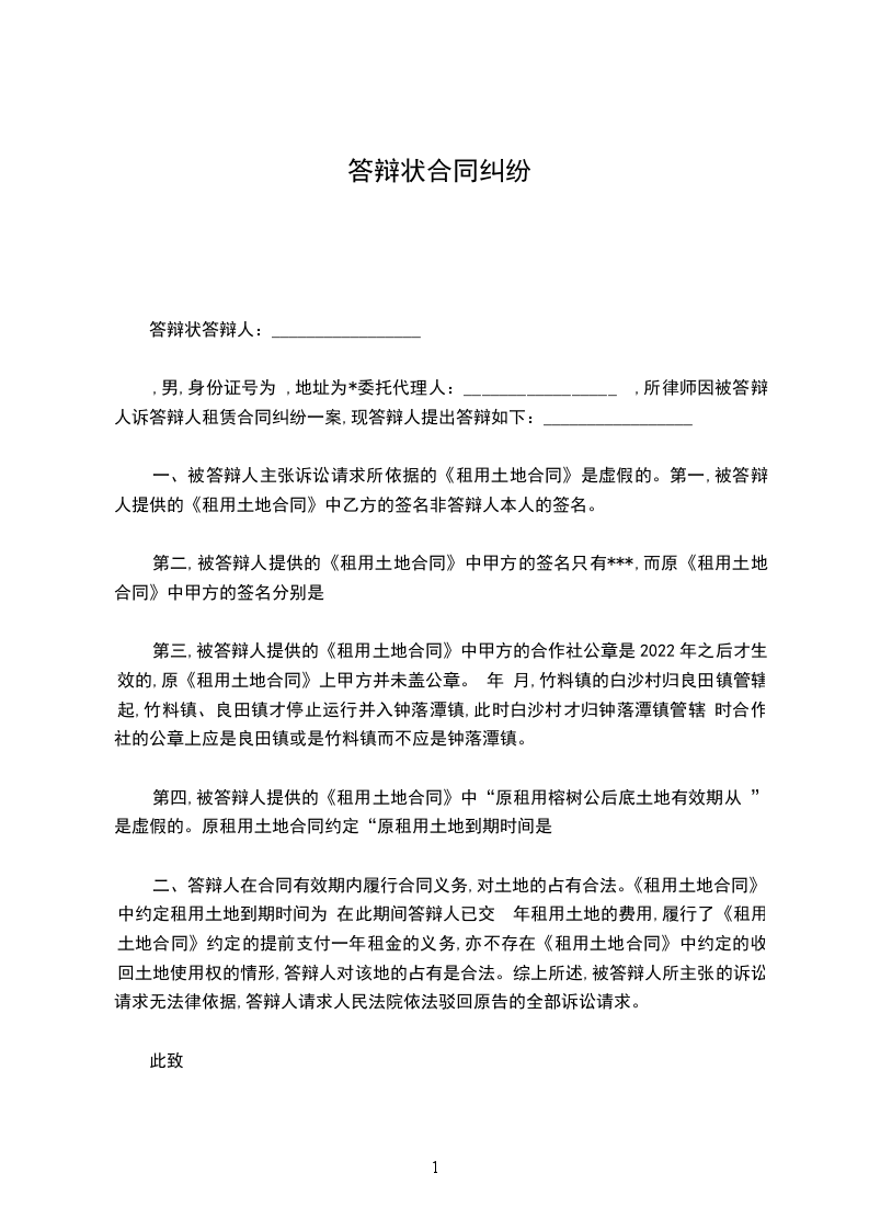 答辩人因与原告合伙协议纠纷一案,现提出如下答辩意见:
