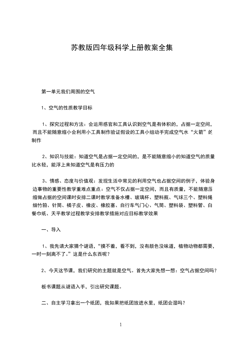 2、知识与技能:知道空气是占据一定空间的,是不能随意缩小的。知道空气的质量比水轻,能浮上来。知道空气是有压力的。