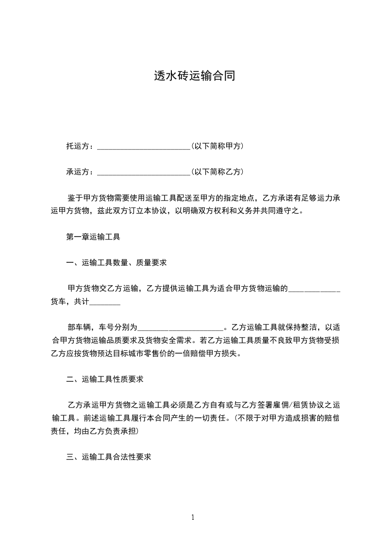 部车辆,车号分别为______________________。乙方运输工具就保持整洁,以适合甲方货物运输品质要求及货物安全需求。若乙方运输工具质量不良致甲方货物受损,乙方应按货物预达目标城市零售价的一倍赔偿甲方损失。