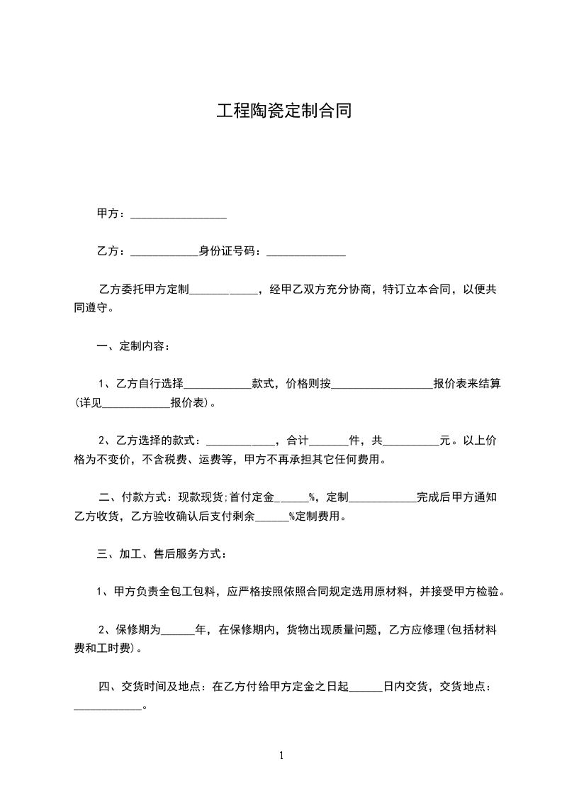 五、验收标准及方式:甲方交货给乙方进行验收,以乙方认可图片、材质为准。乙方在收到货品______天内,如没有异议,视为甲方提供货品合格。