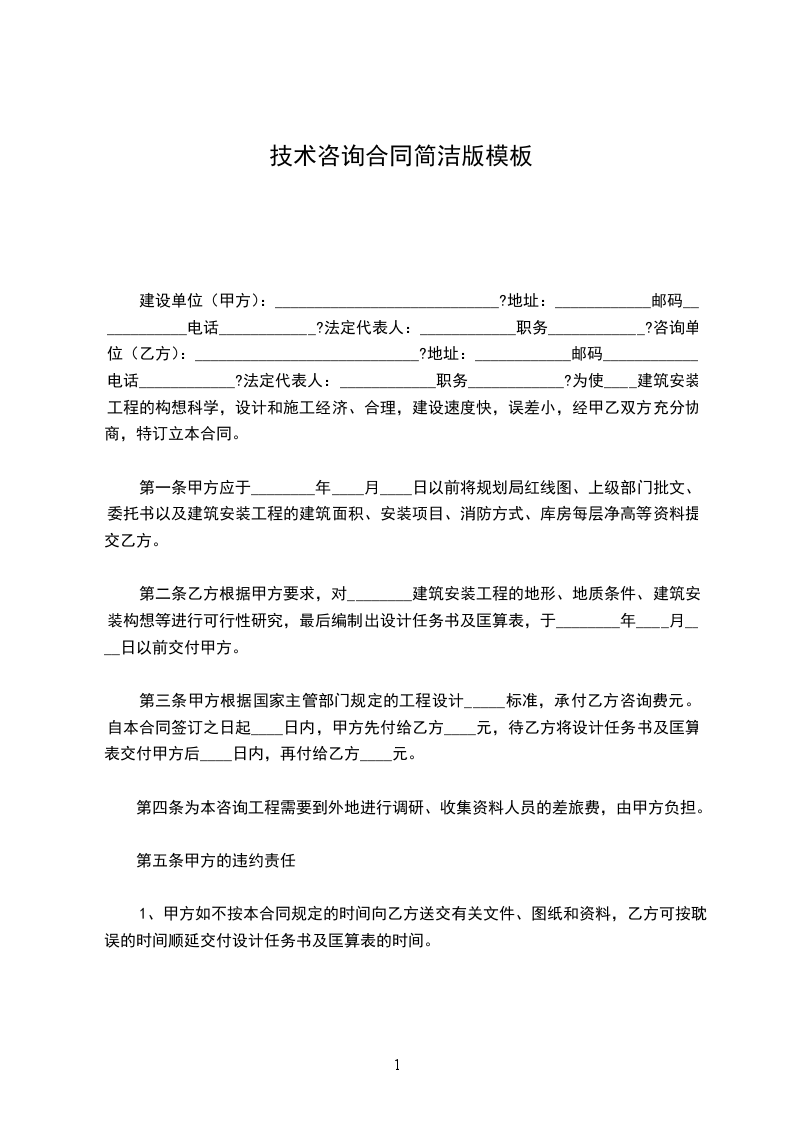 建设单位(甲方):____________________________?地址:____________邮码____________电话____________?法定代表人:____________职务____________?咨询单位(乙方):____________________________?地址:____________邮码____________电话____________?法定代表人:____________职务____________?为使____建筑安装工程的构想科学,设计和施工经济、合理,建设速度快,误差小,经甲乙双方充分协商,特订立本合同。