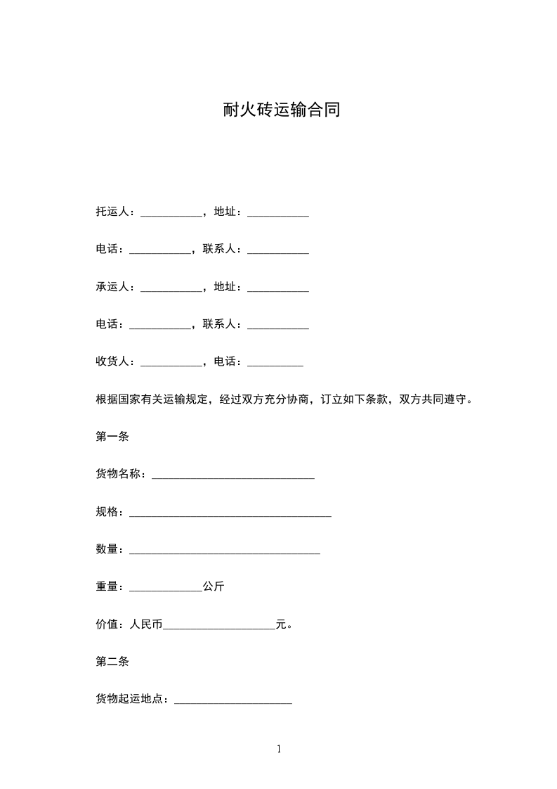 承运人:___________,地址:___________
