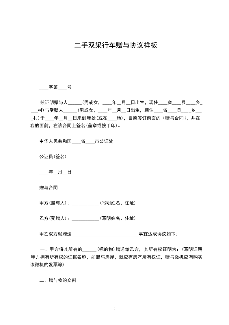 第一条甲方将其所有的__________________牌汽车一辆(车牌号:________________________)无偿赠送给乙方,乙方同意接受赠与。