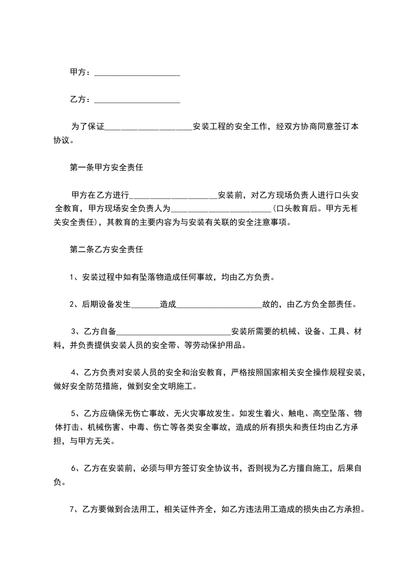为了保证_____________________安装工程的安全工作,经双方协商同意签订本协议。