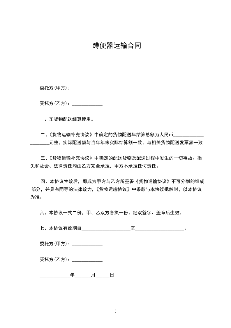 犬用便器运输合同