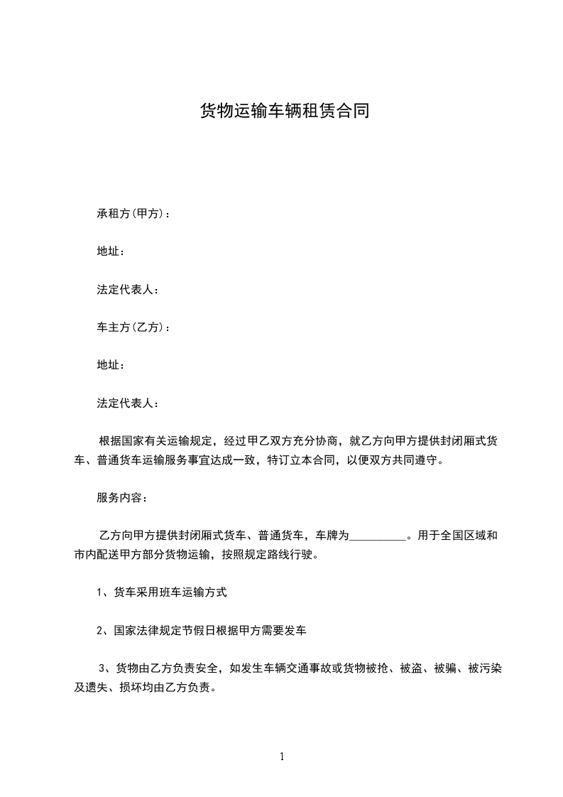 乙方向甲方提供封闭厢式货车、普通货车,车牌为__________。用于全国区域和市内配送甲方部分货物运输,按照规定路线行驶。