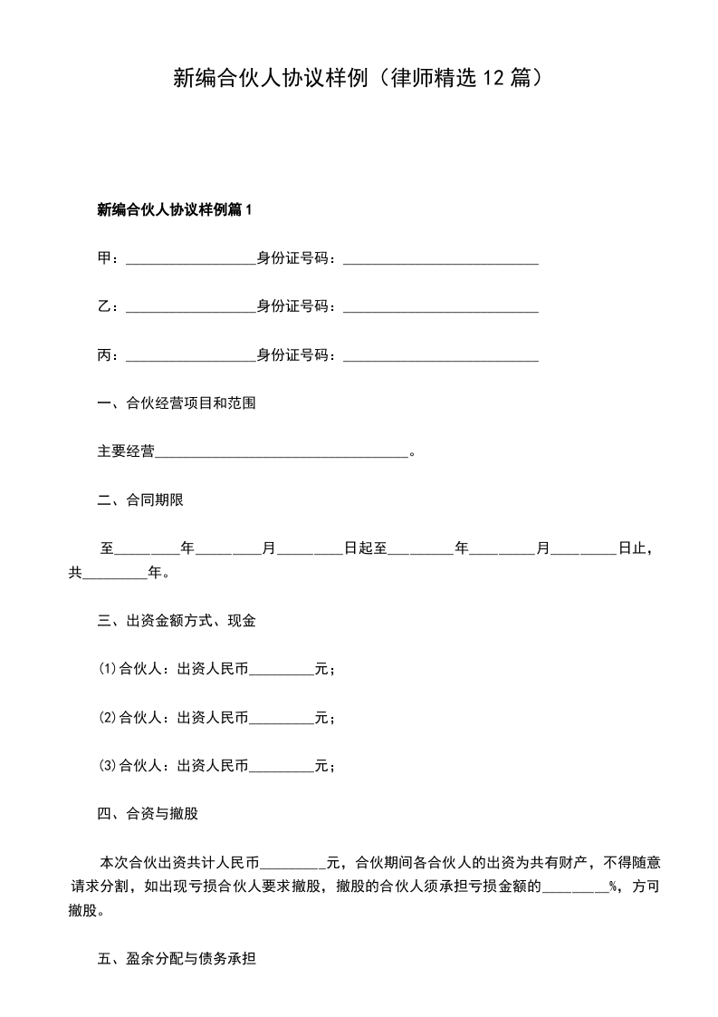 1、接纳新的合伙人须由本协议当事人一致同意。
