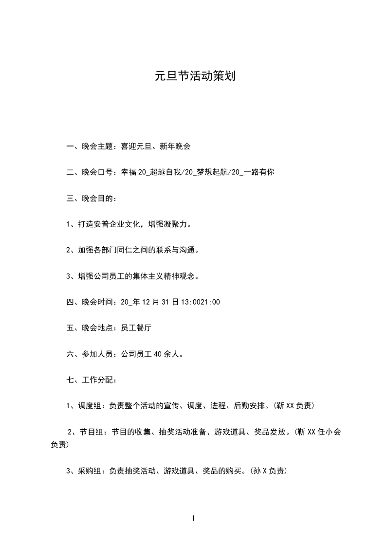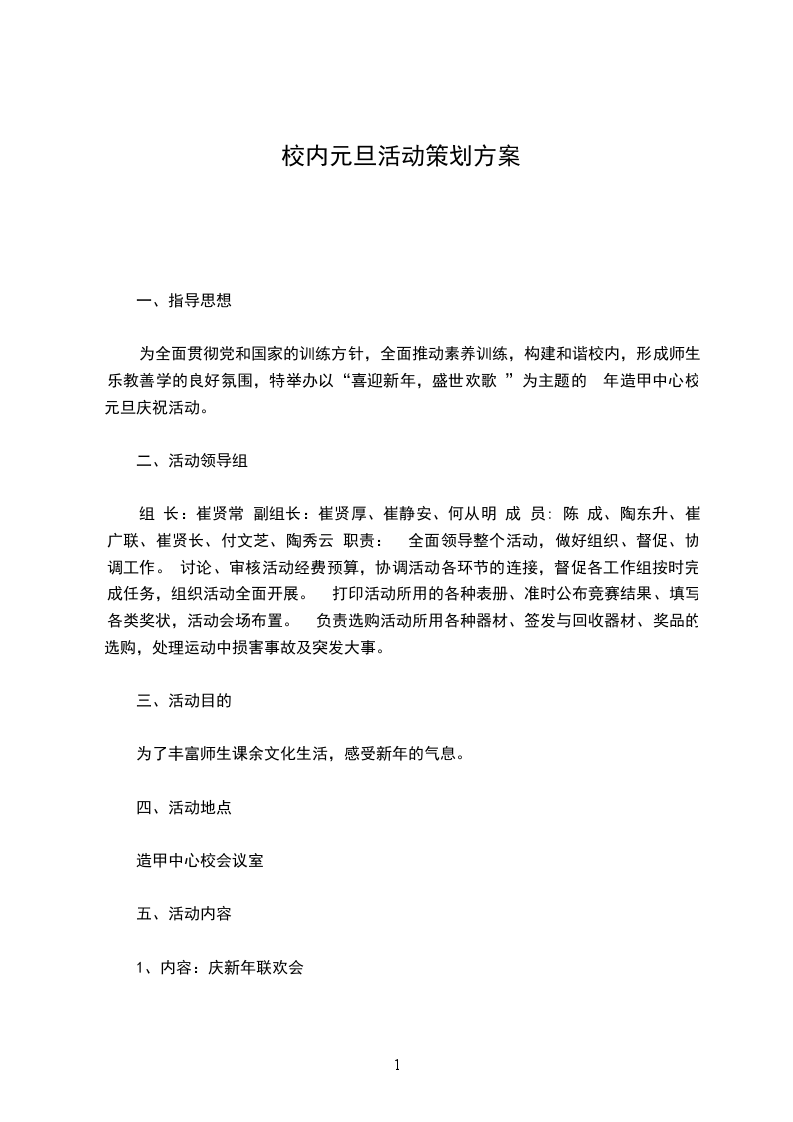 1、内容:庆新年联欢会