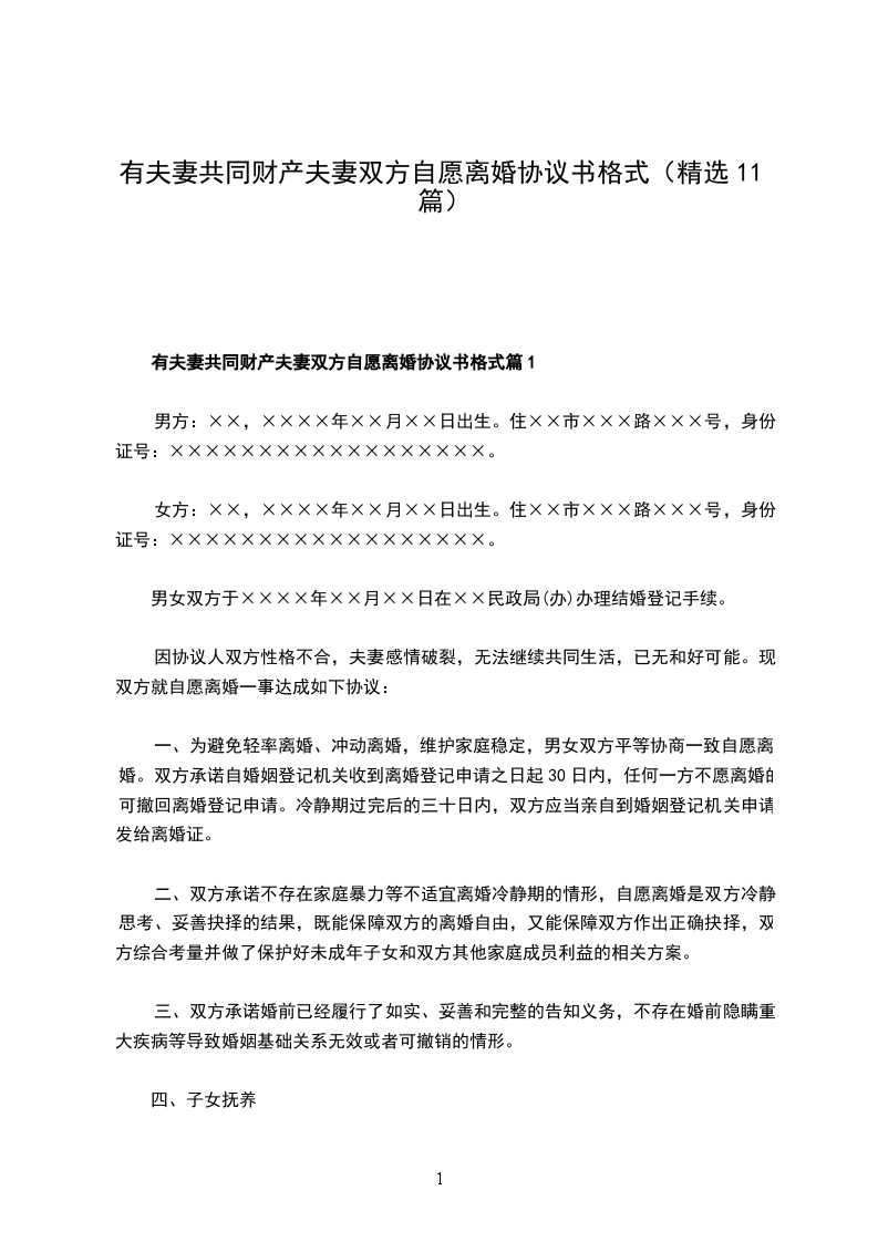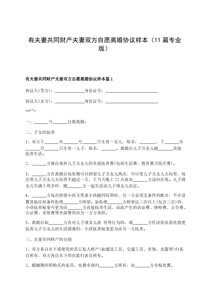 有夫妻共同财产夫妻双方自愿离婚协议书模板篇11