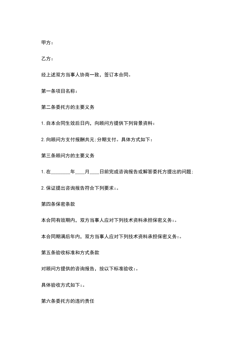 1.顾问方迟延提交咨询报告和意见的,应当支付数额为的违约金;
