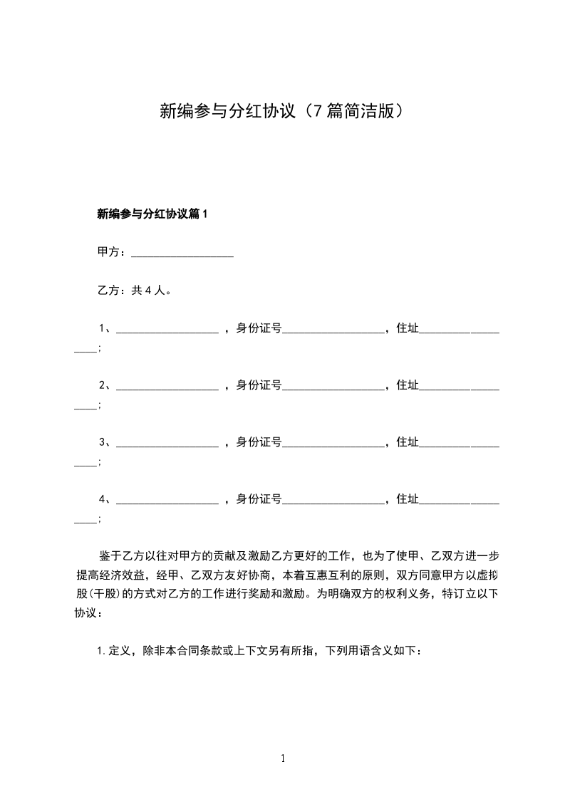 新编参与分红协议篇1