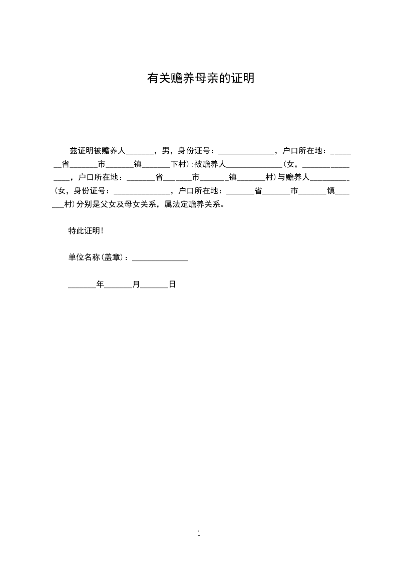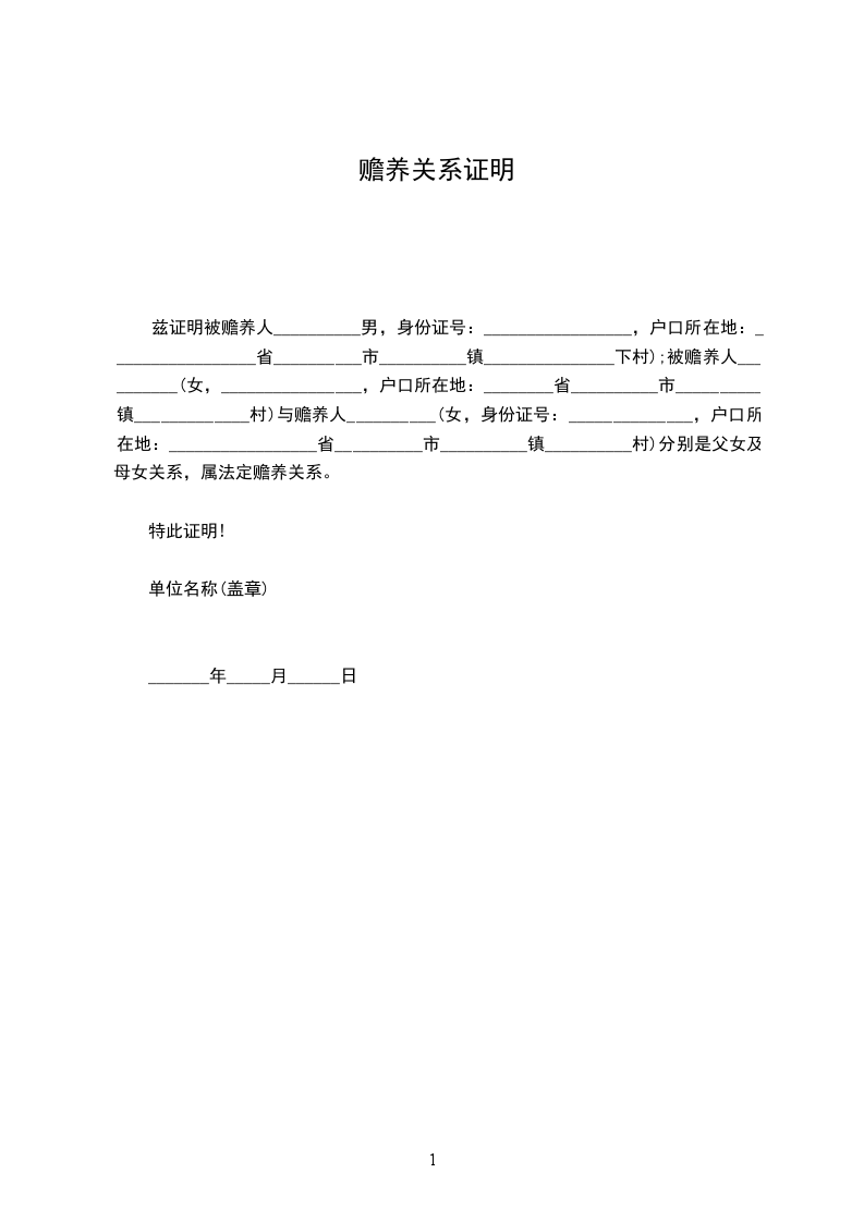 兹证明被赡养人__________男,身份证号:________________________________,户口所在地:_________________________);