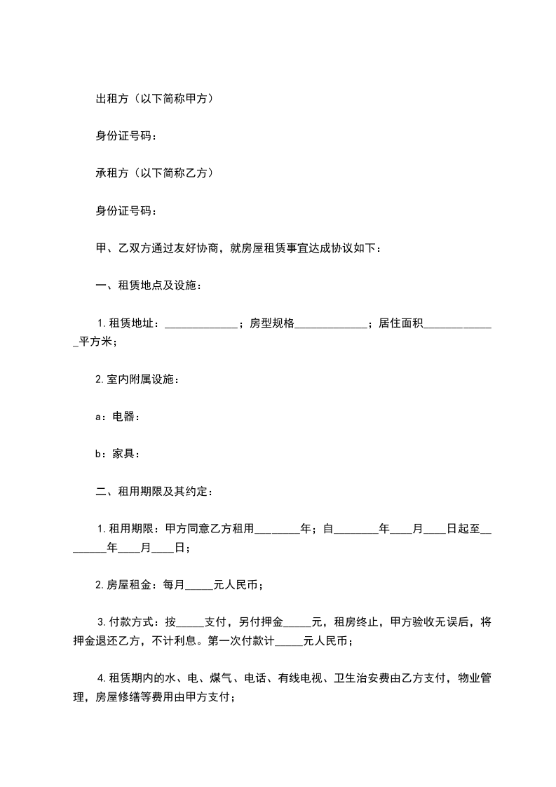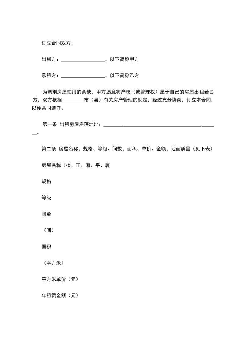 1.租赁地址:_____________;房型规格_____________;居住面积_____________平方米;