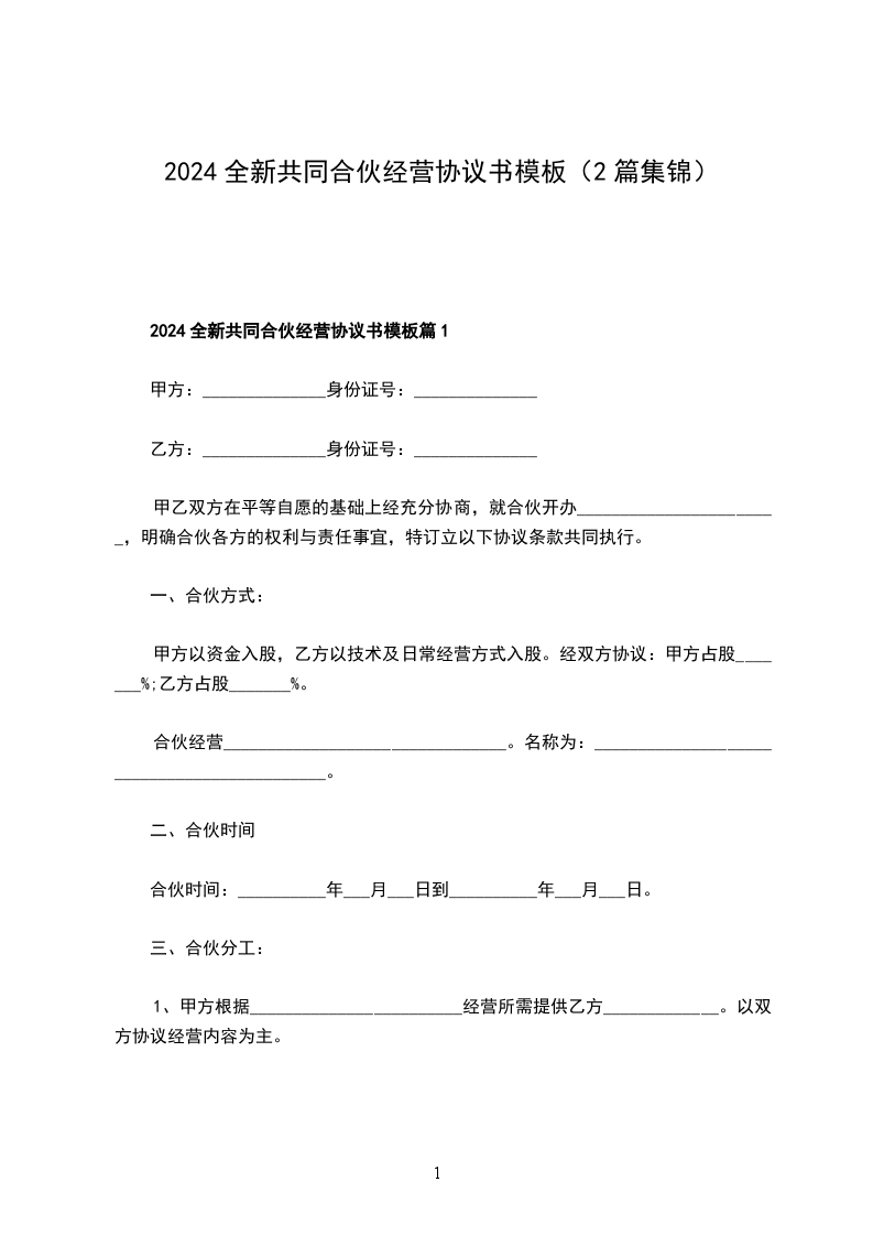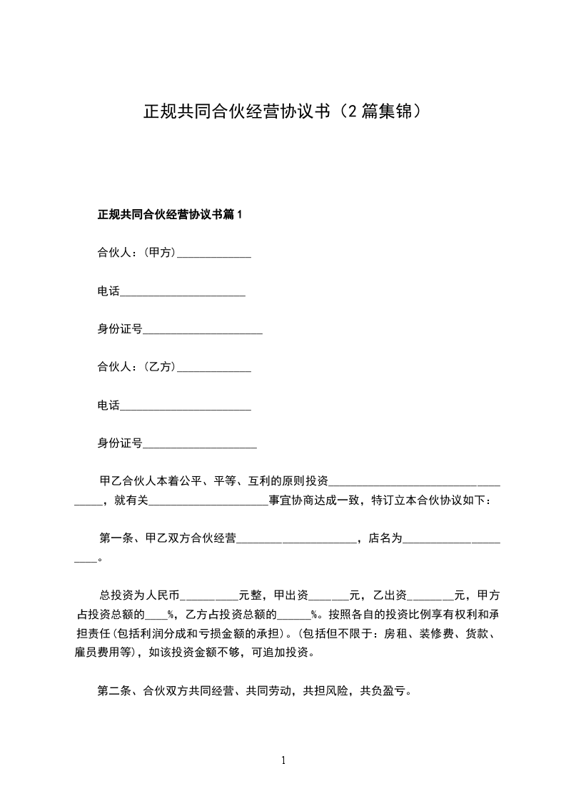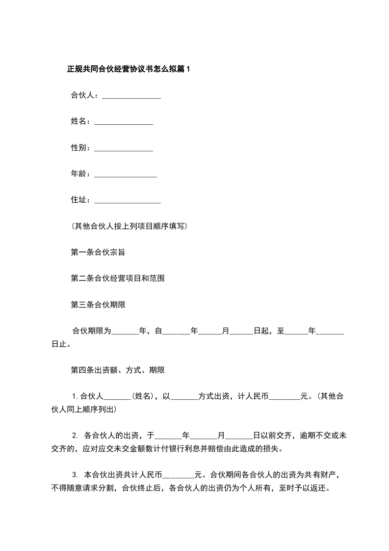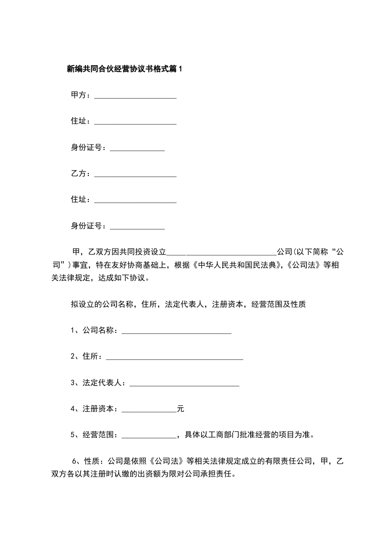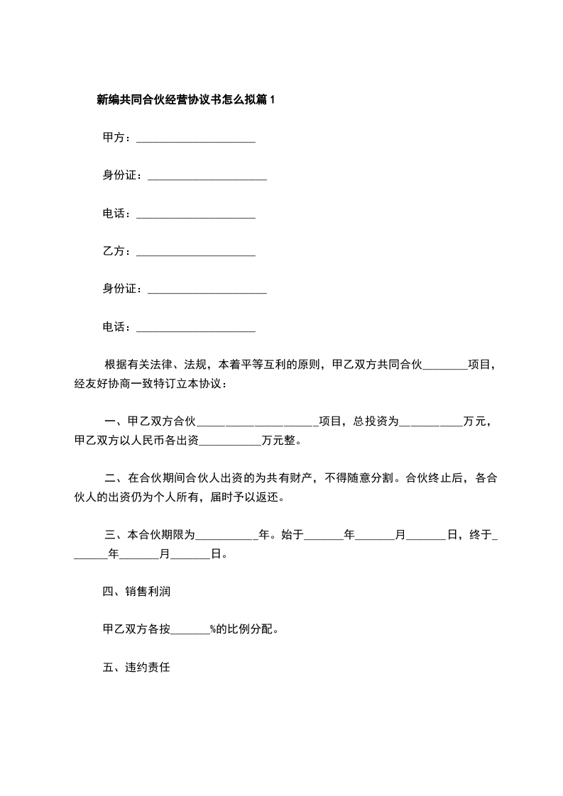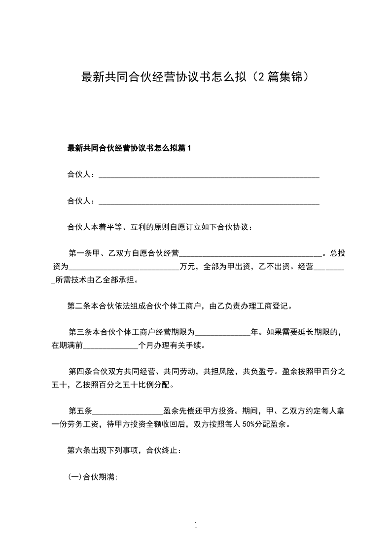 最新共同合伙经营协议书怎么拟篇1