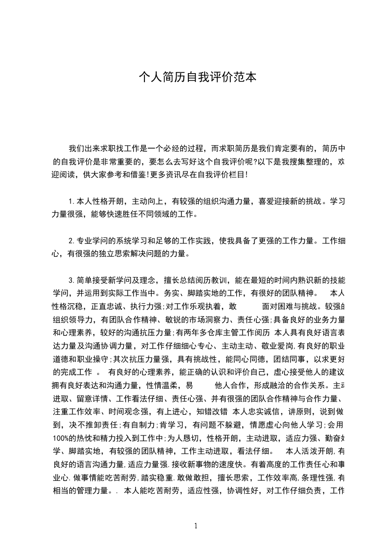 我们出来求职找工作是一个必经的过程,而求职简历是我们肯定要有的,简历中的自我评价是非常重要的,要怎么去写好这个自我评价呢?以下是我搜集整理的,欢迎阅读,供大家参考和借鉴!更多资讯尽在自我评价栏目!