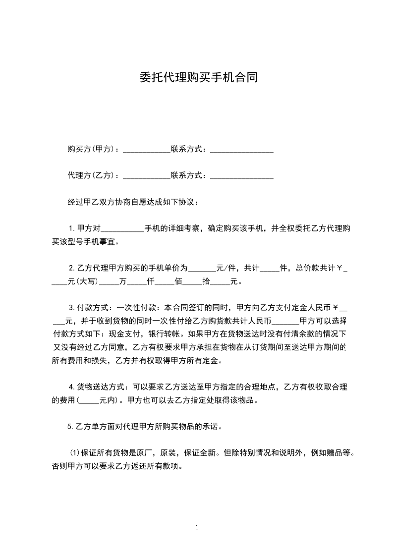 1.甲方对___________手机的详细考察,确定购买该手机,并全权委托乙方代理购买该型号手机事宜。