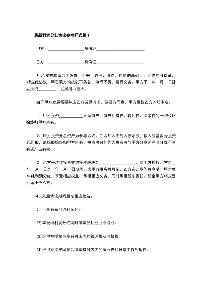 2、_________年_________月,甲方得百分之_________,乙方得百分之_________。在5月及以后,甲方和乙方按甲方百分之_________,乙方百分之_________进行利润分配,甲方不领取工资。