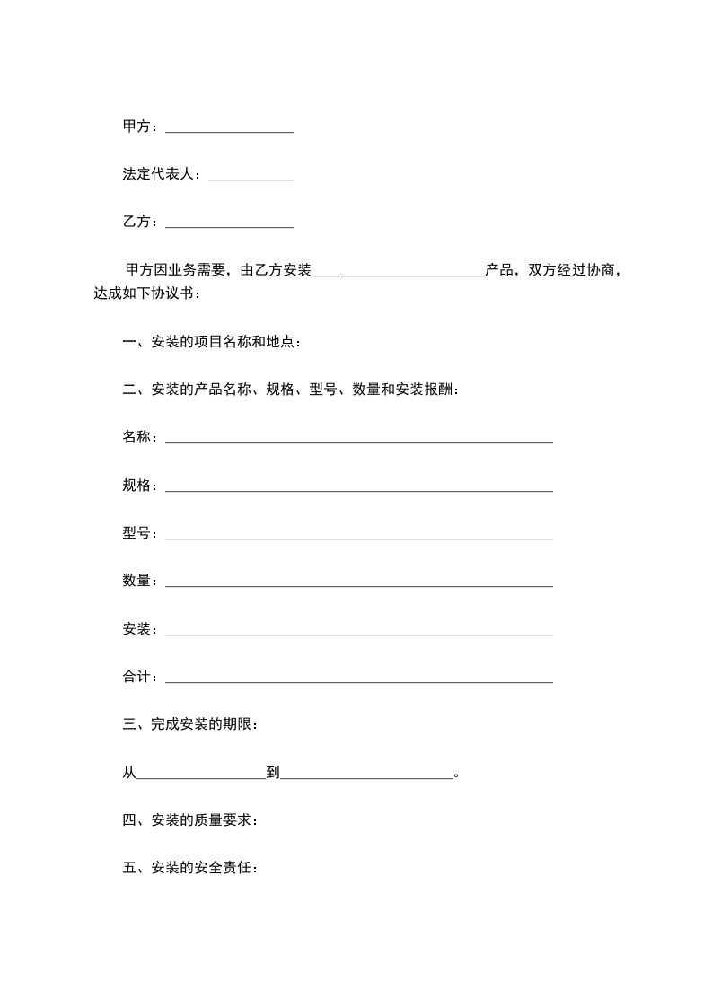 甲方因业务需要,由乙方安装________________________产品,双方经过协商,达成如下协议书: