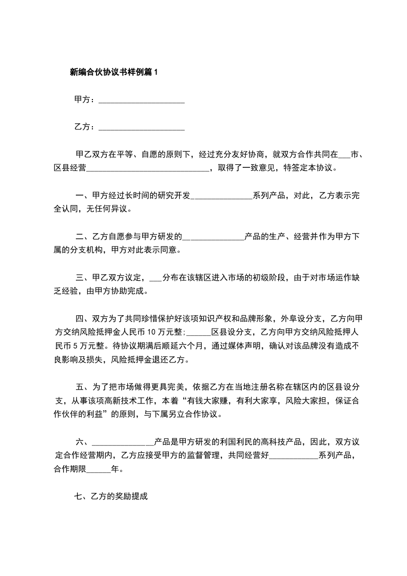 新编合伙协议书样例篇10