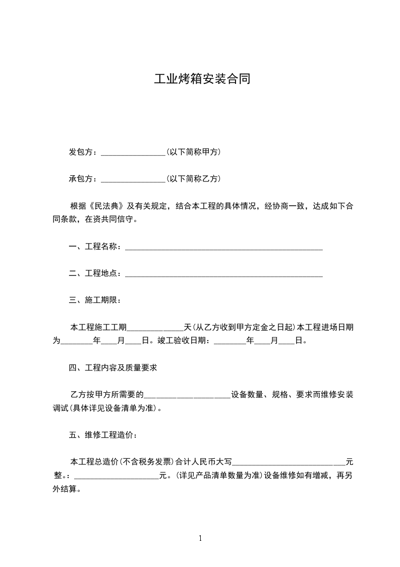 1、工程进场施工前,甲方应现场清理完毕,完成供排水及土建烟道等设备,提供水、电、能源(油、石油气等)装置,并接到施工现场范围内供乙方使用。