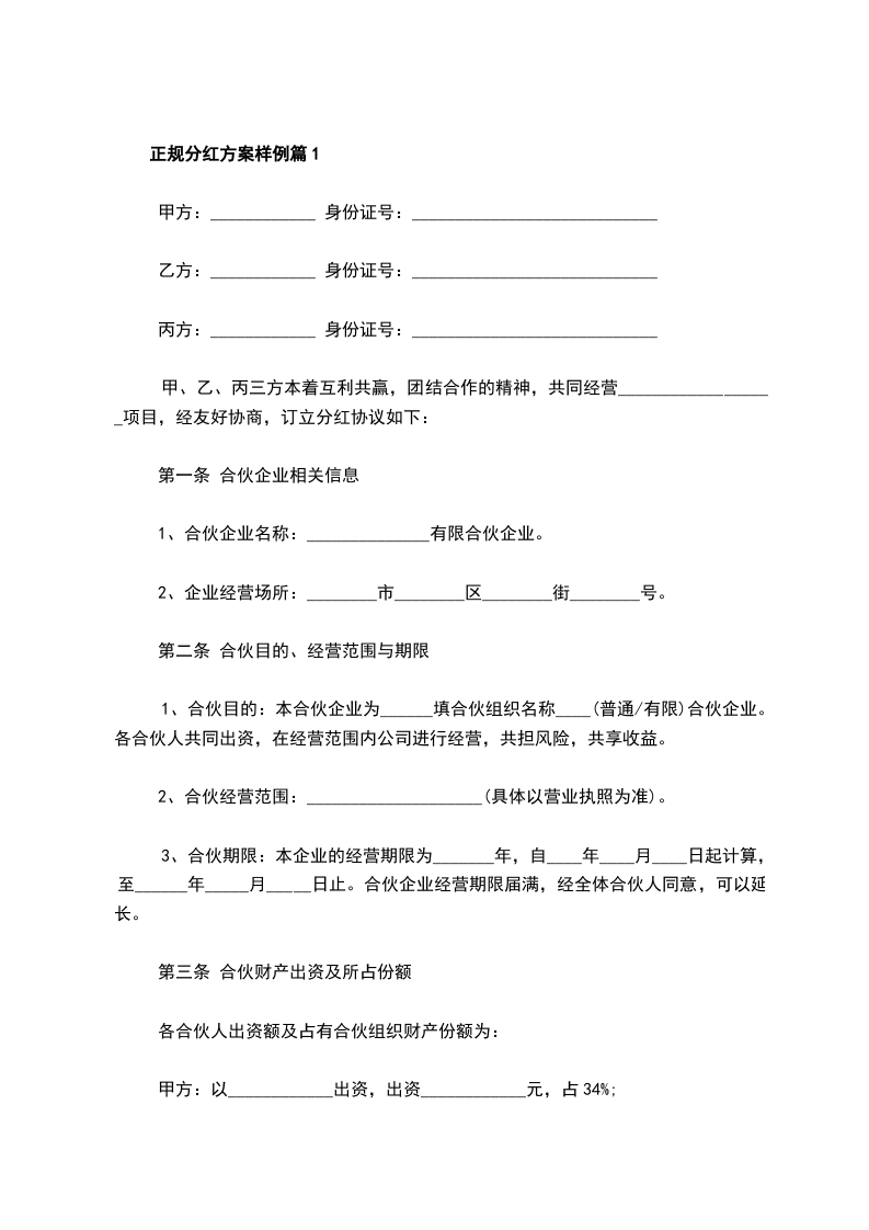 甲、乙、丙三方本着互利共赢,团结合作的精神,共同经营__________________项目,经友好协商,订立分红协议如下:
