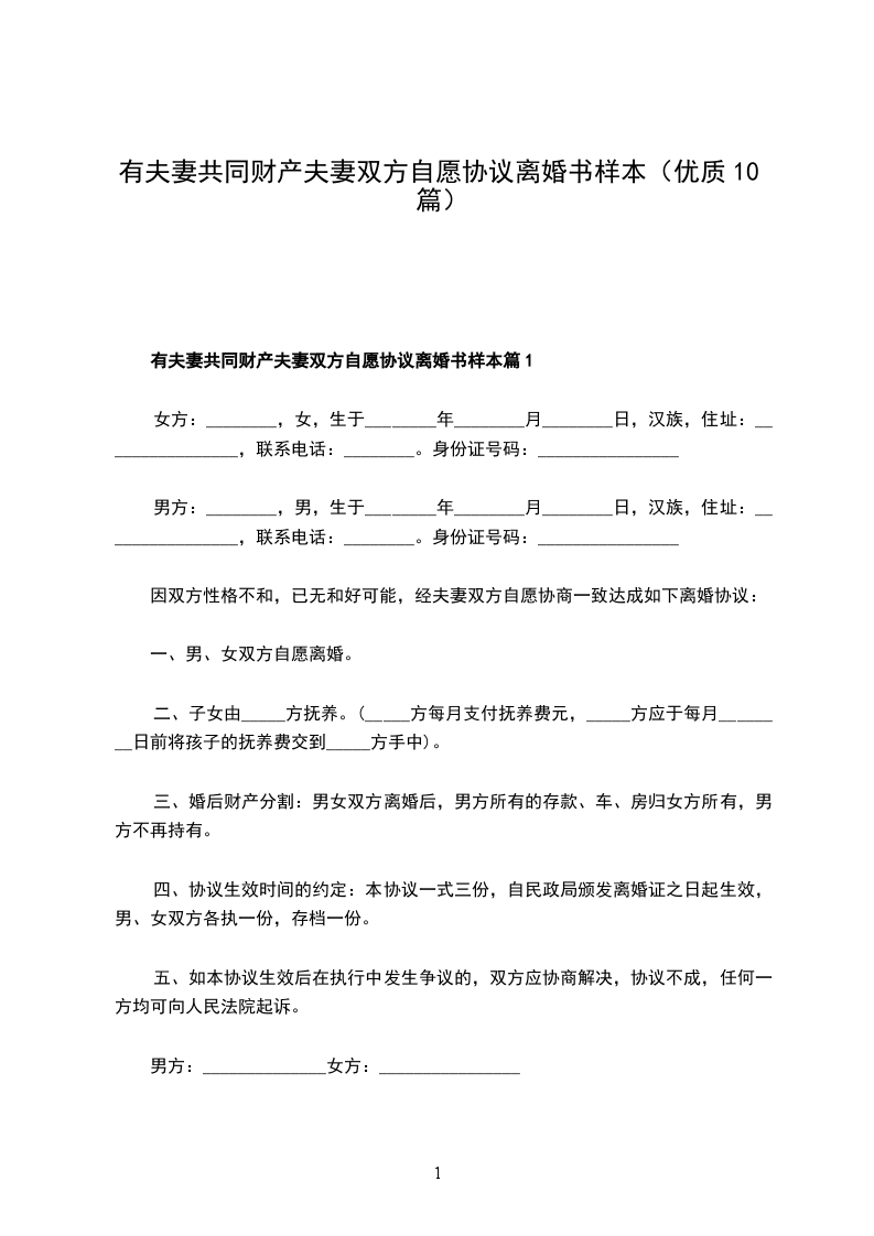 一、男女双方均自愿离婚