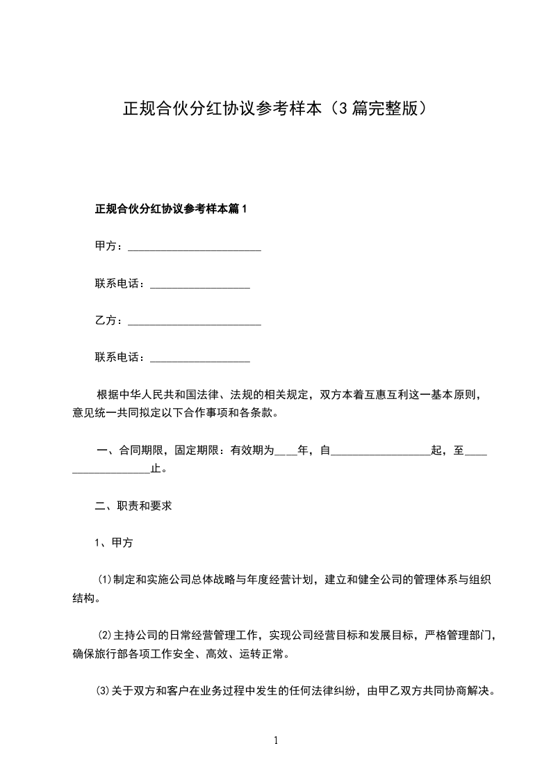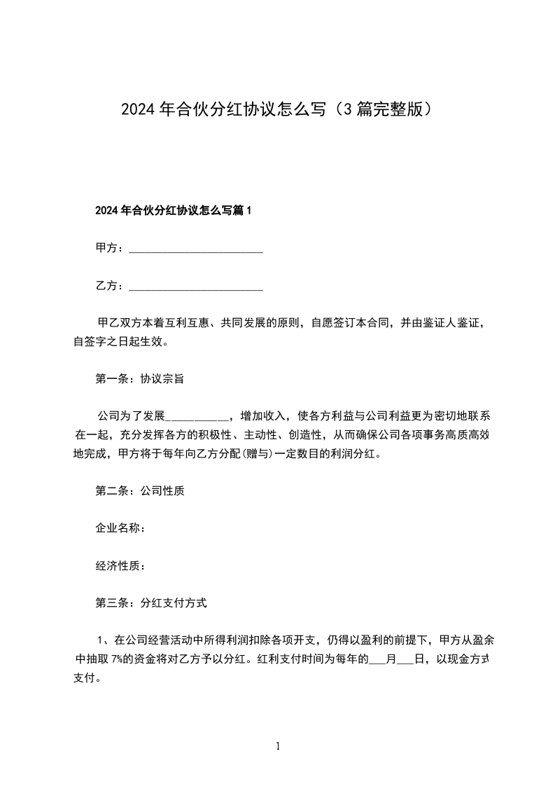 2024年合伙分红协议怎么写篇1