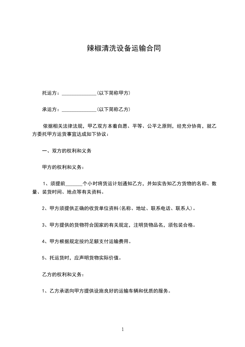 依据相关法律法规,甲乙双方本着自愿、平等、公平之原则,经充分协商,就乙方委托甲方运货事宜达成如下协议: