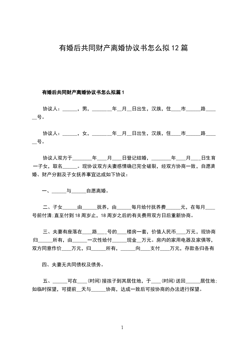 有婚后共同财产男方协议离婚范本怎么拟篇12