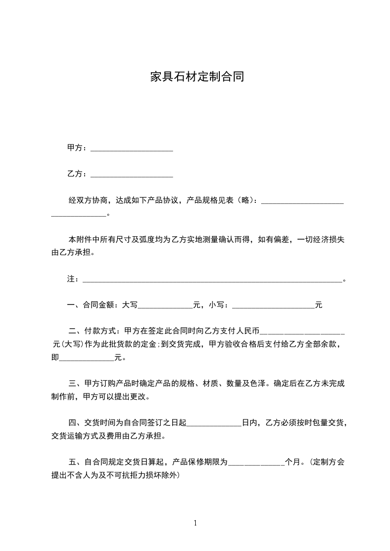 五、自合同规定交货日算起,产品保修期限为______________个月。(定制方会提出不含人为及不可抗拒力损坏除外)