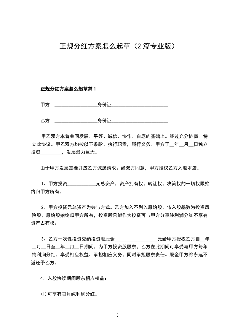 正规分红方案怎么起草篇1