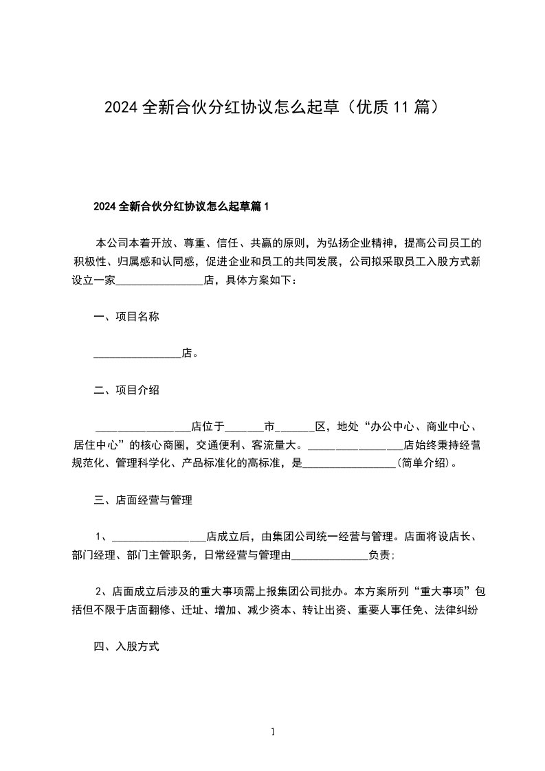 新版合伙分红协议怎么起草篇1