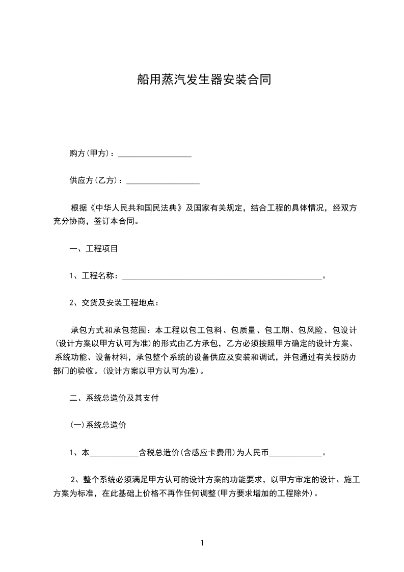蒸汽机安装合同