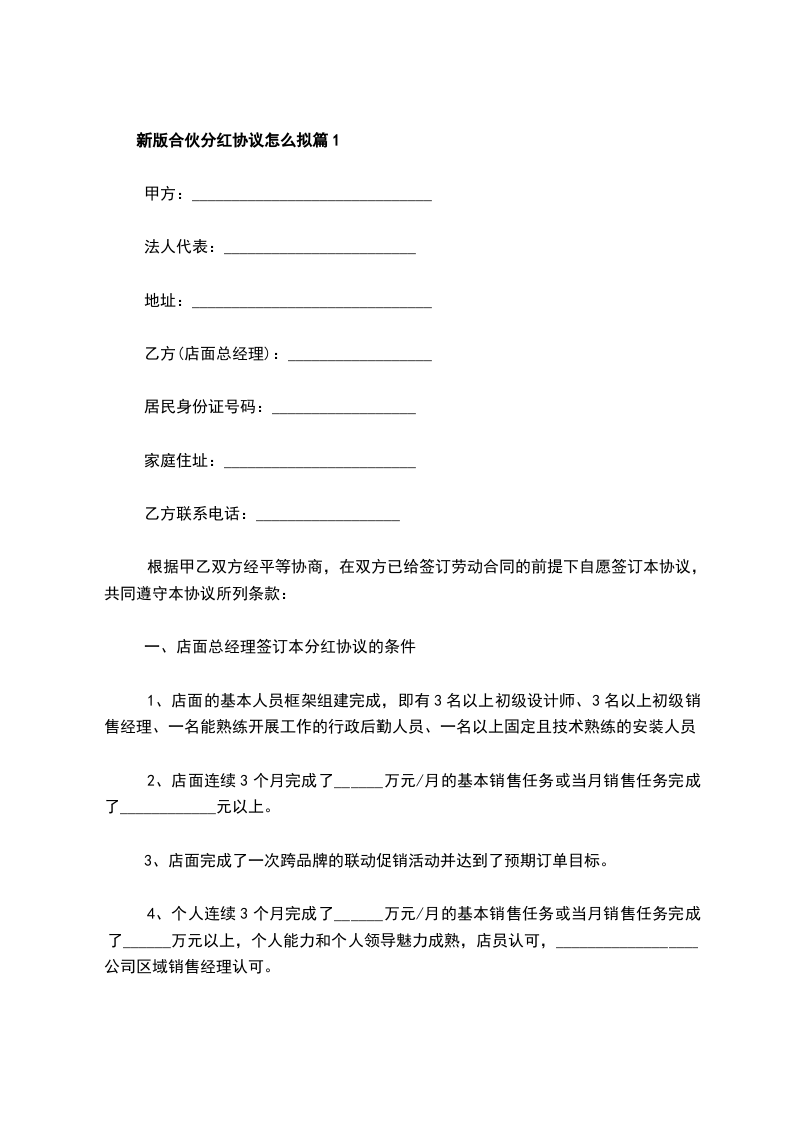 新版合伙分红协议怎么拟篇2