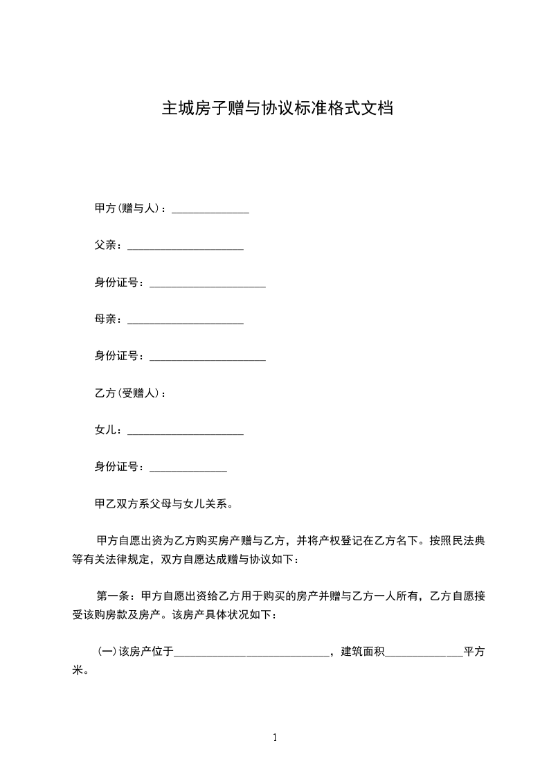 甲方自愿出资为乙方购买房产赠与乙方,并将产权登记在乙方名下。按照民法典等有关法律规定,双方自愿达成赠与协议如下: