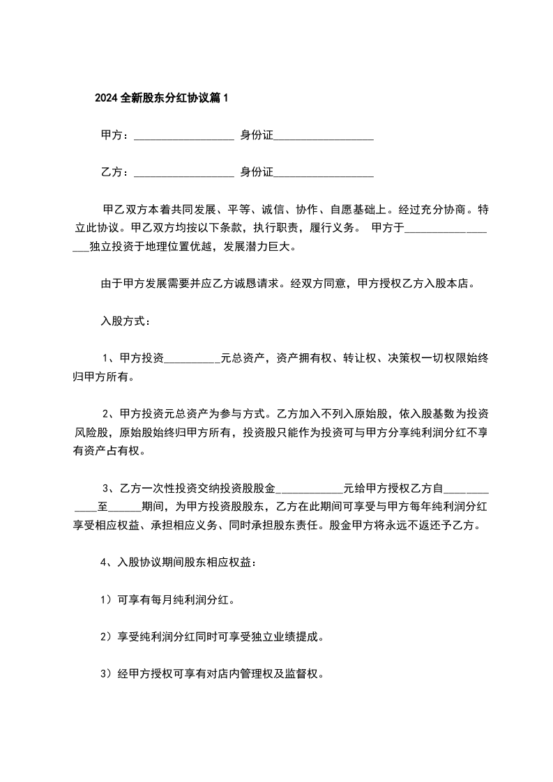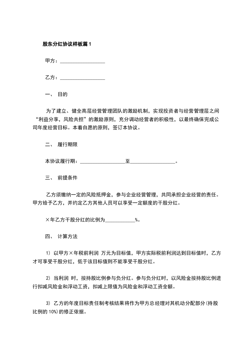 3、乙方一次性投资交纳投资股股金__________________元给甲方授权乙方自__年__月__日至__年__月__日期间,为甲方投资股股东,乙方在此期间可享受与甲方每年纯利润分红。享受相应权益、承担相应义务、同时承担股东责任。股金甲方将永远不返还予乙方。