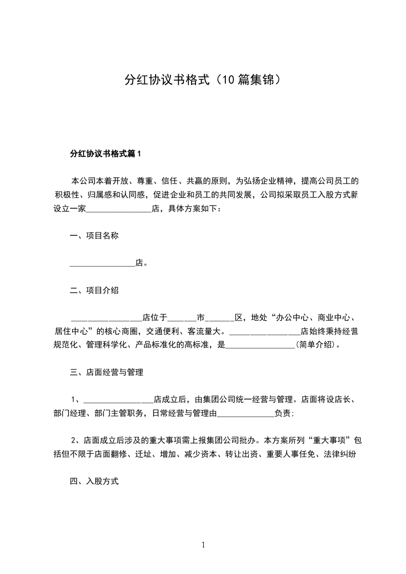 分红协议书格式篇10