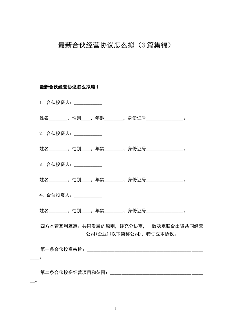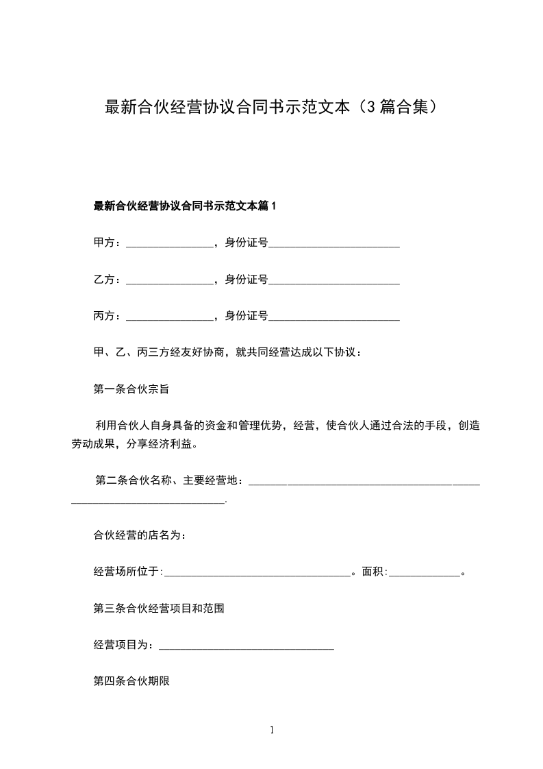 最新合伙经营协议合同书示范文本篇1