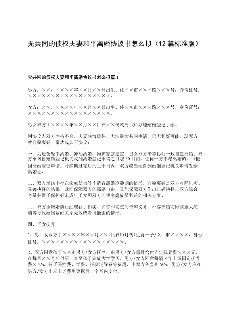 无共同债权债务夫妻和平离婚协议书怎么拟篇9