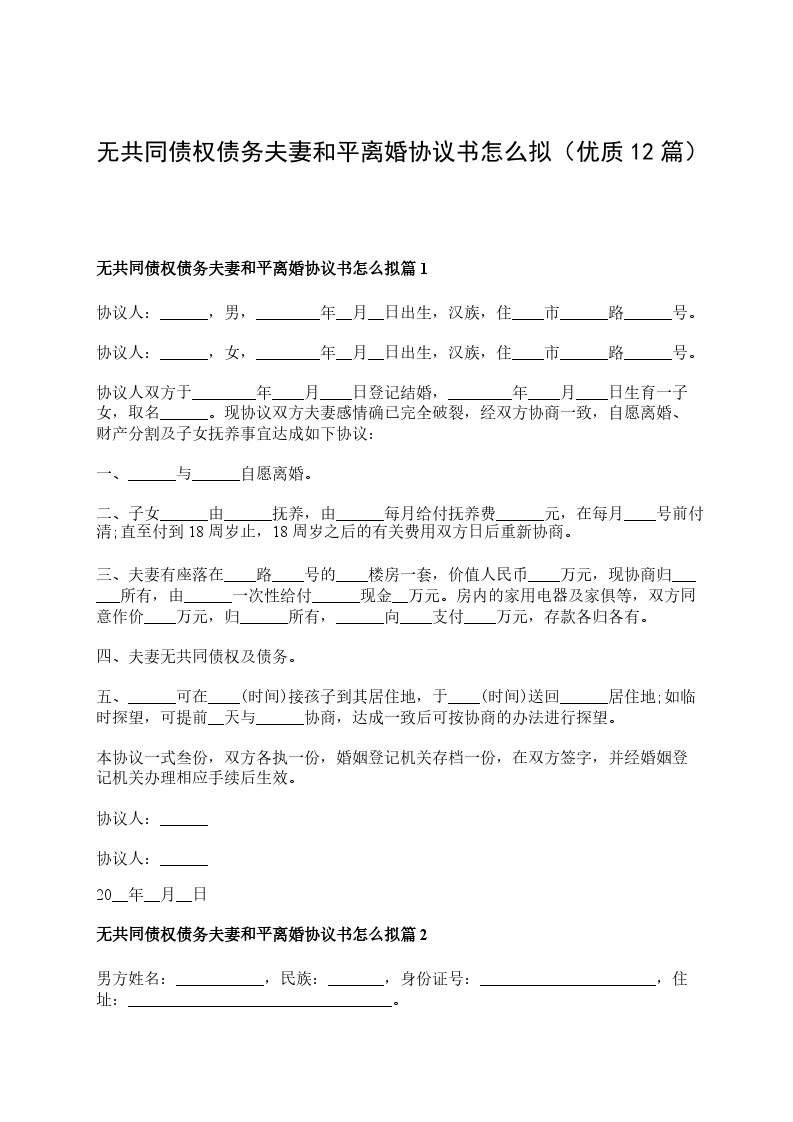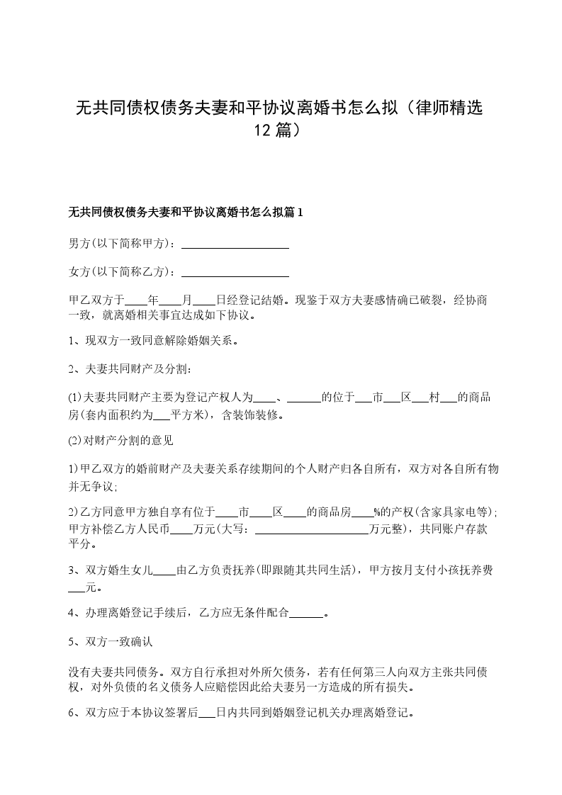 无共同债权债务夫妻和平离婚协议书怎么拟篇12