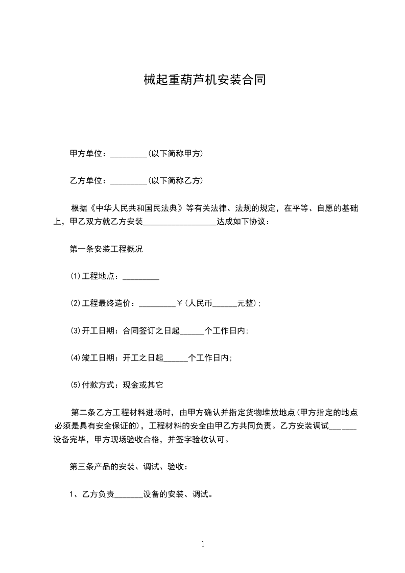 根据《中华人民共和国民法典》等有关法律、法规的规定,在平等、自愿的基础上,甲乙双方就乙方安装__________________达成如下协议:
