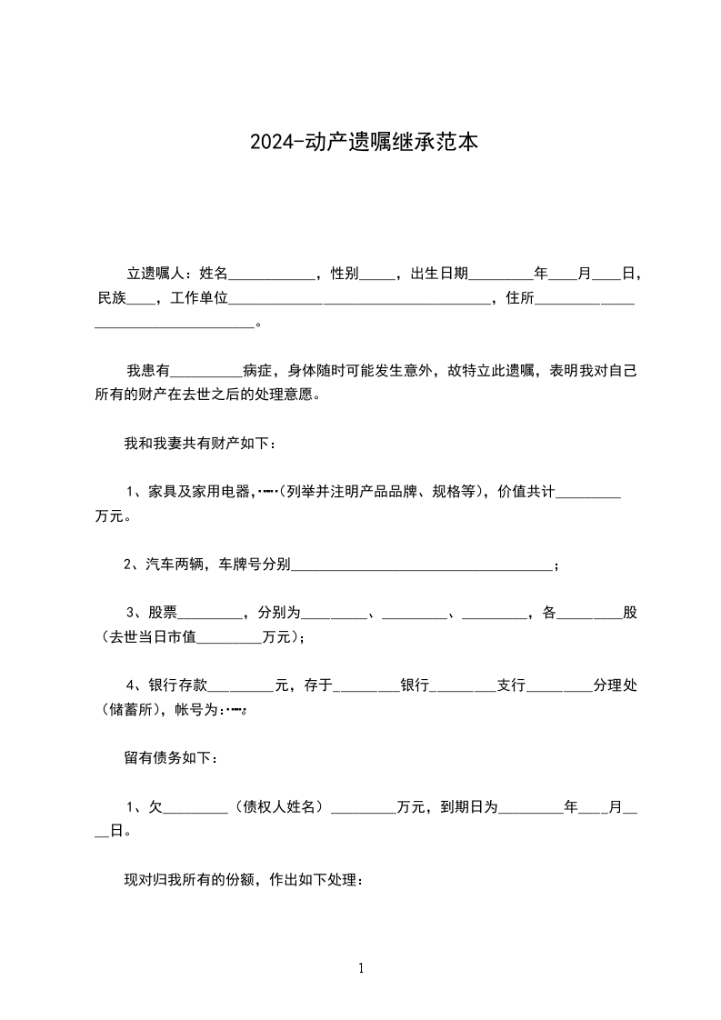 我患有__________病症,身体随时可能发生意外,故特立此遗嘱,表明我对自己所有的财产在去世之后的处理意愿。
