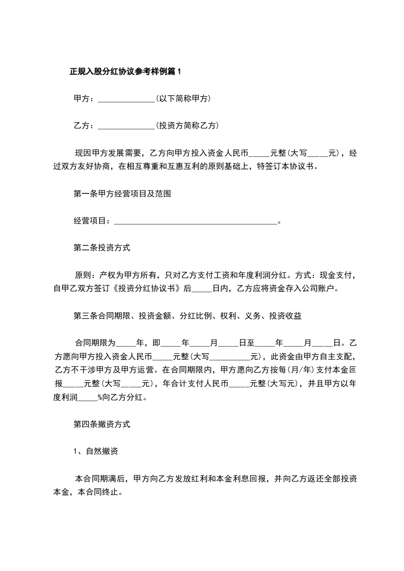 正规入股分红协议格式篇2