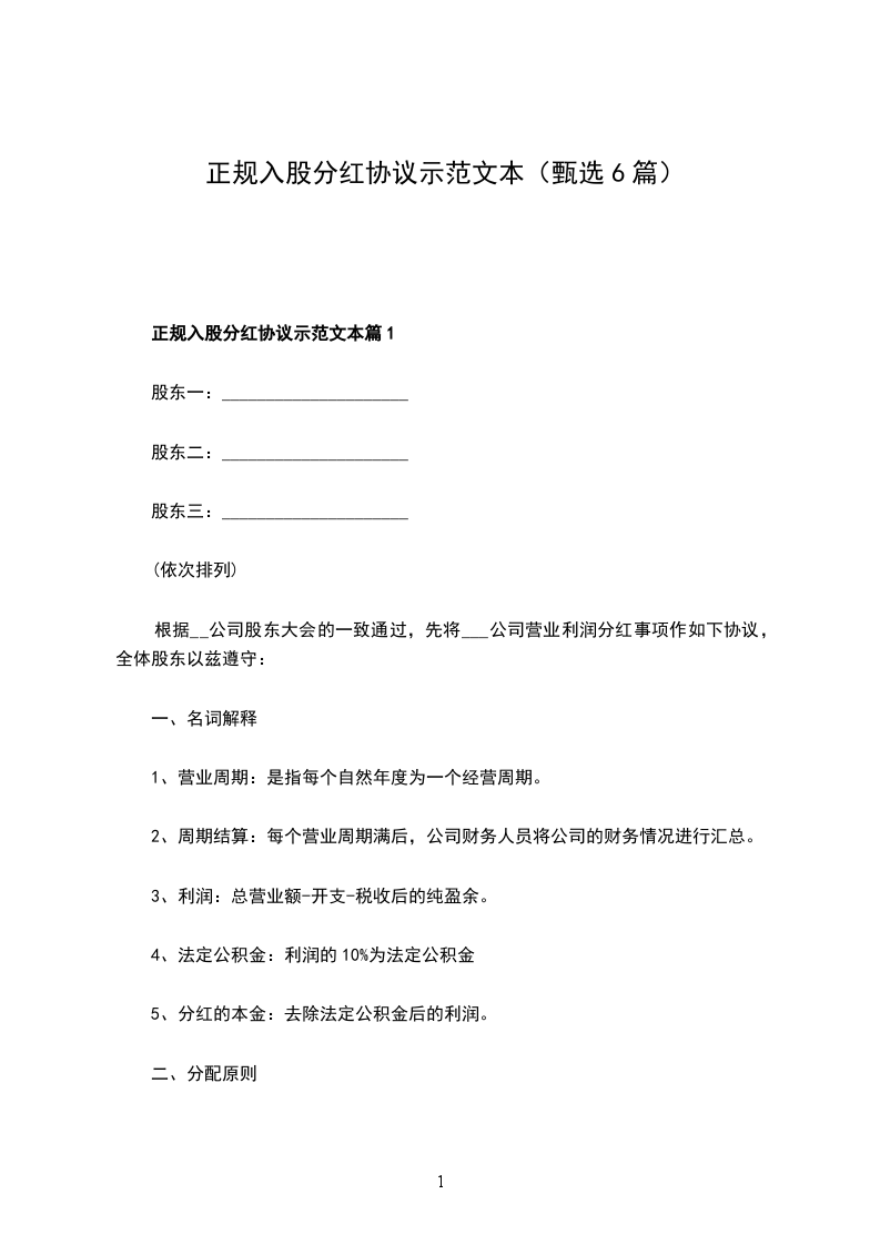 正规入股分红协议格式篇6