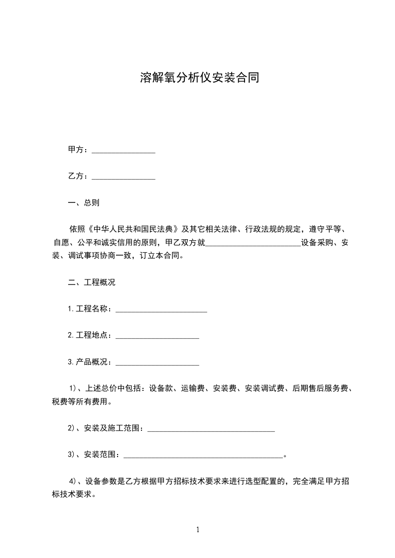 依照《中华人民共和国民法典》及其它相关法律、行政法规的规定,遵守平等、自愿、公平和诚实信用的原则,甲乙双方就________________________设备采购、安装、调试事项协商一致,订立本合同。
