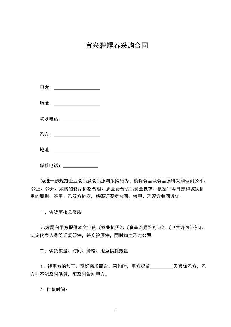 为进一步规范企业食品及食品原料采购行为,确保食品及食品原料采购做到公平、公正、公开、采购的食品价格合理、质量符合食品安全要求,根据平等自愿和诚实信用的原则,经甲、乙双方协商,特签订买卖合同,供甲、乙双方共同遵守。