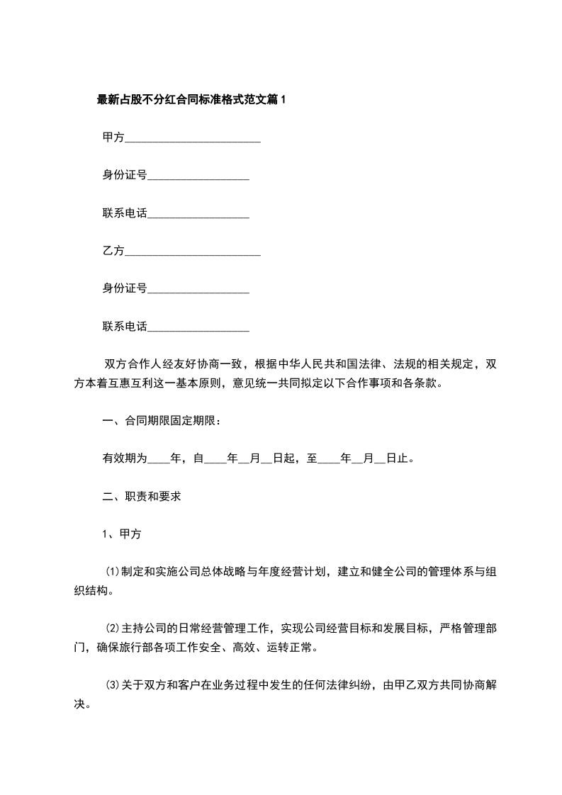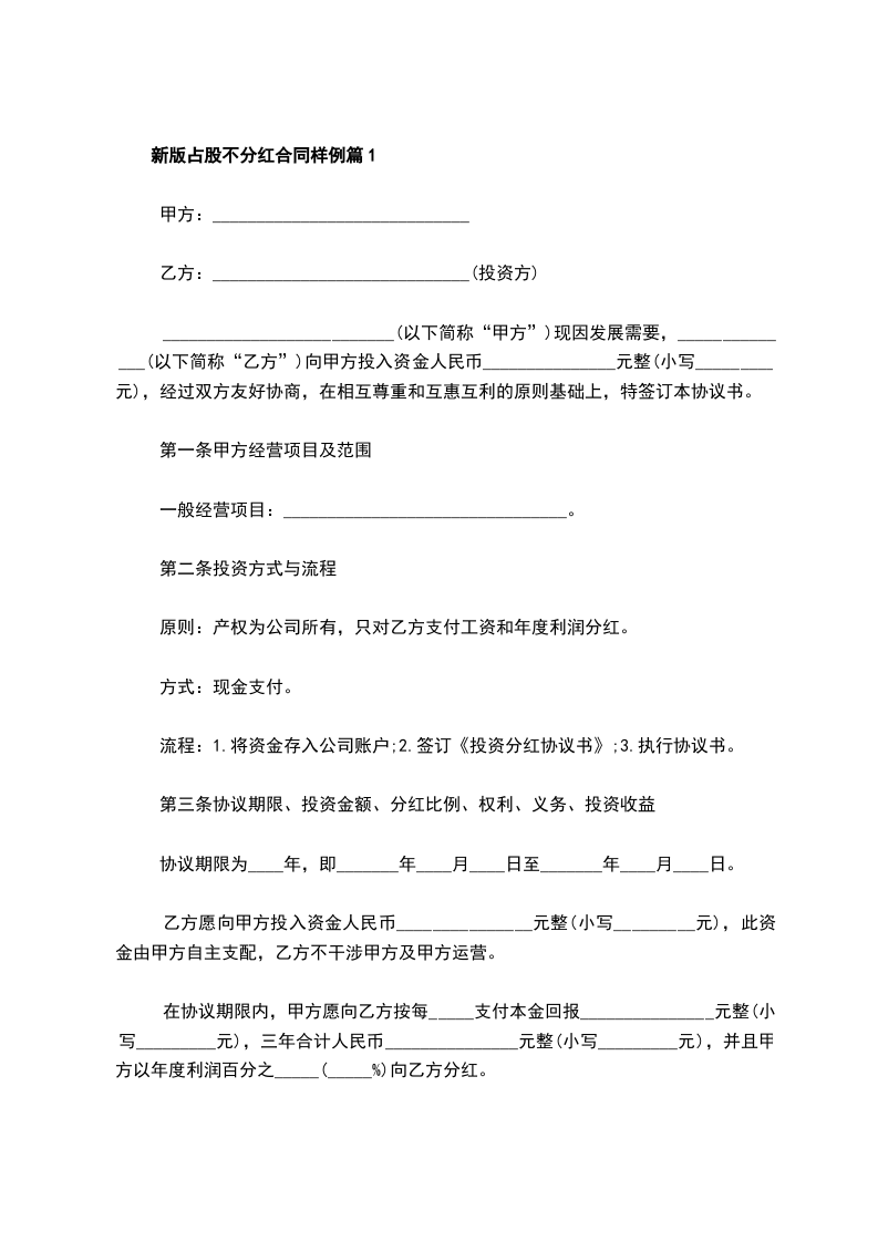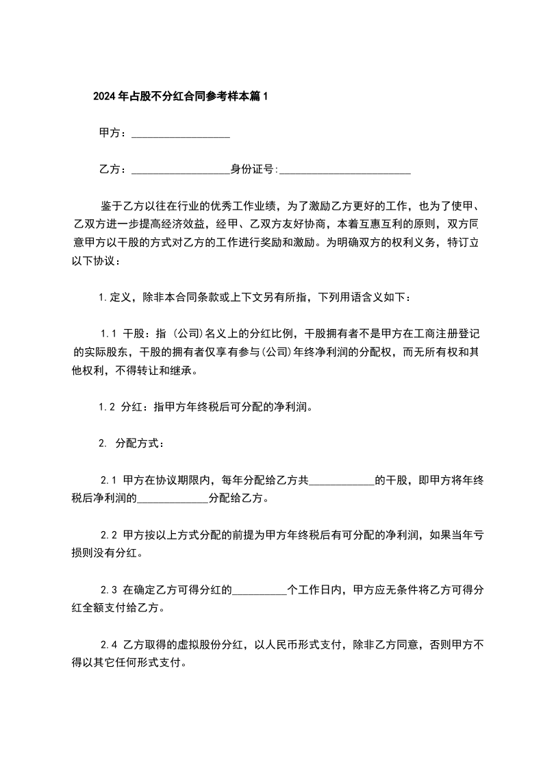 4、在年底分红前,乙方若没有资金注入甲方公司,则不占有公司分红。