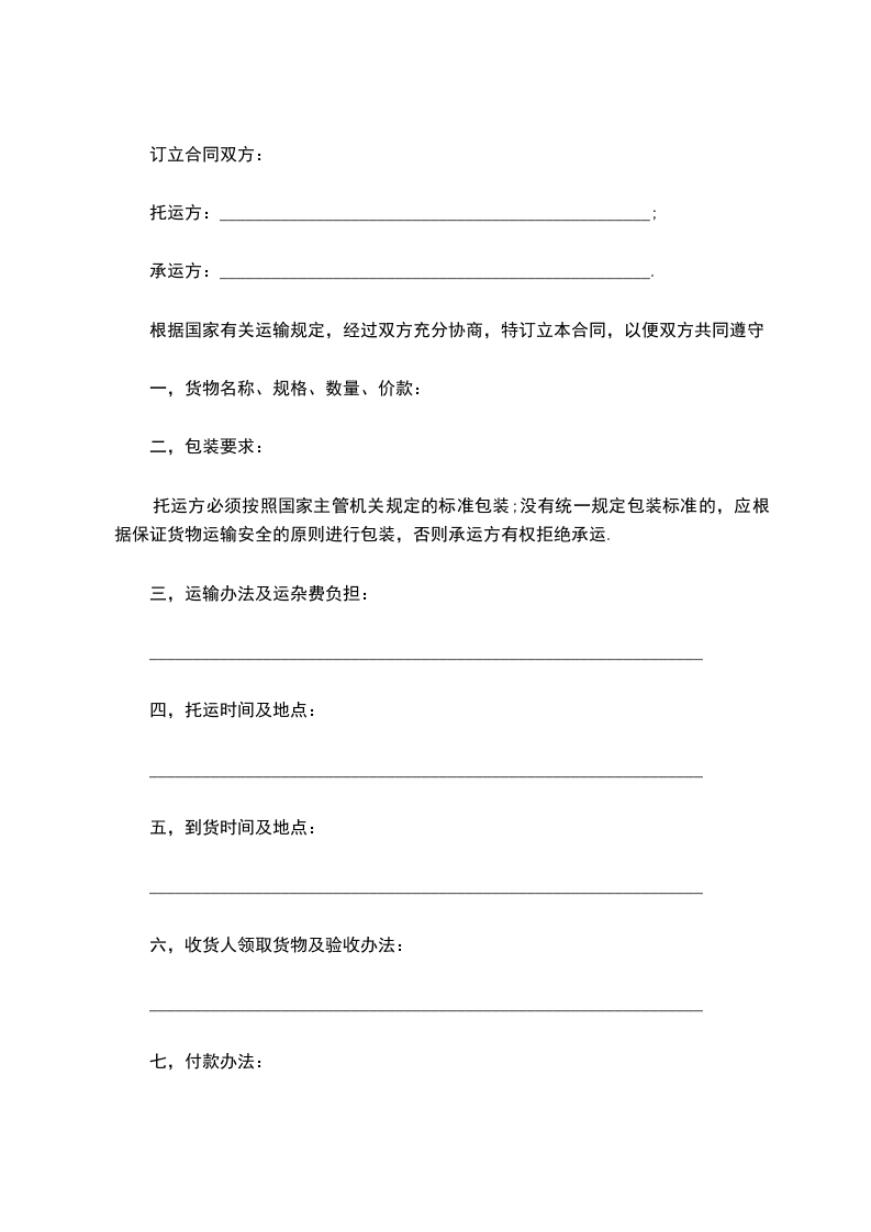 1、甲方提供________________给乙方承运。