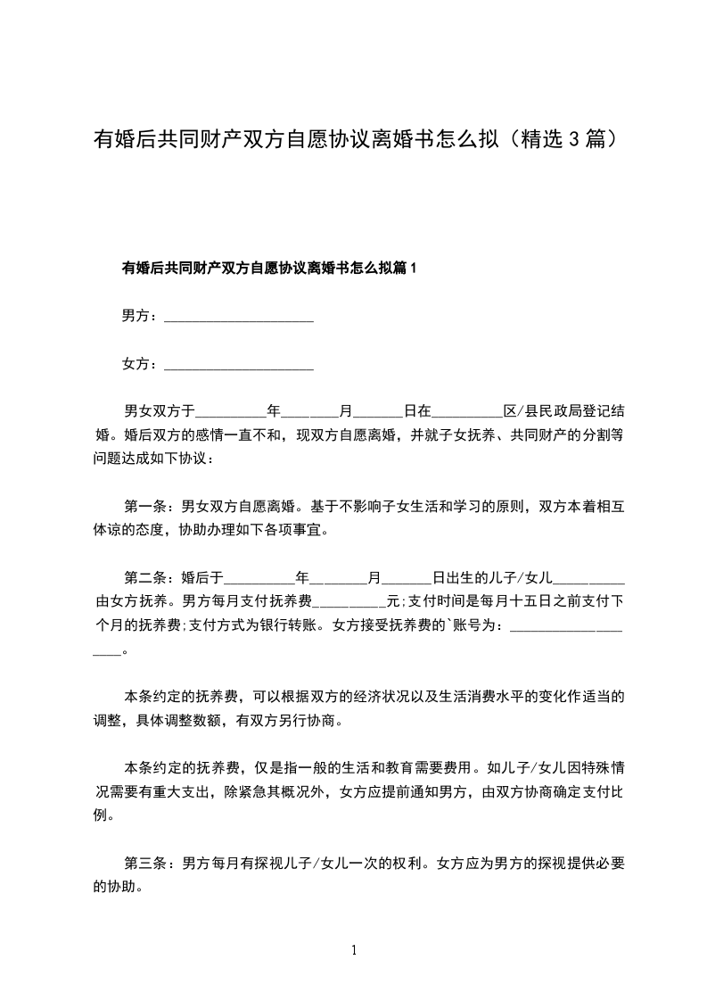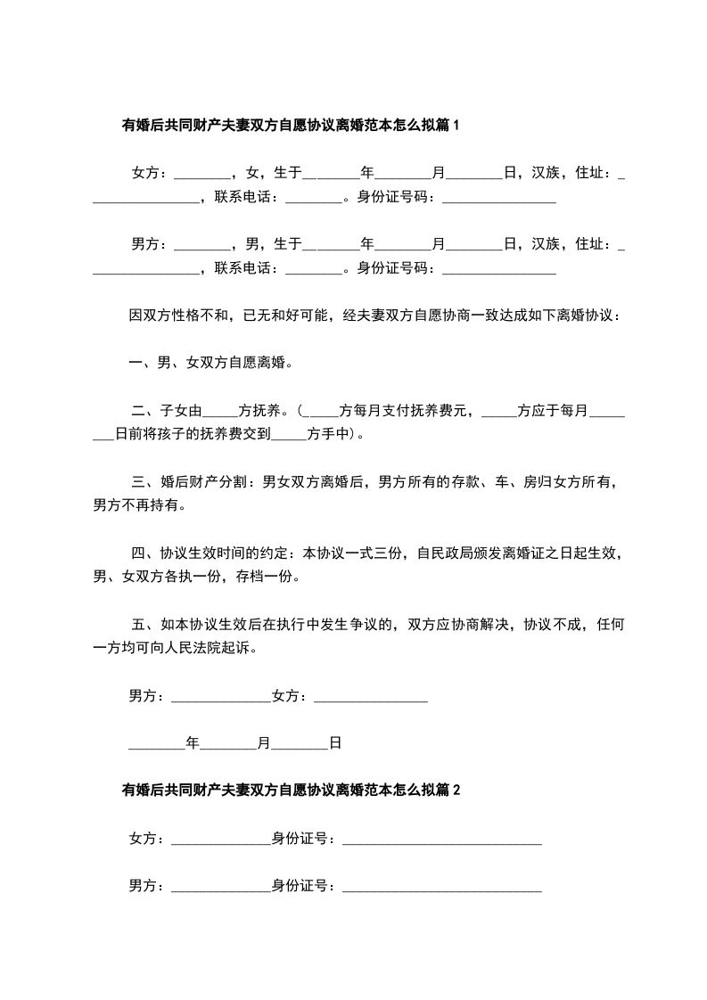 有婚后共同财产双方协商协议离婚范本怎么拟篇1